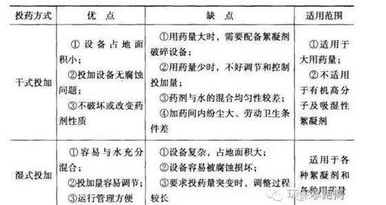 干式投加一般有计量容积和计量质量两种方法,两者的误差分别为5%左右和1%左右。湿式投加有纵重力投加、水射器投加、计量泵投加等方式,都是计量所加絮凝剂的容积。中小规模的混凝处理系统的絮凝剂投加一般使用计量泵投加方式,人工调整和自动调整都能很容易地实现。